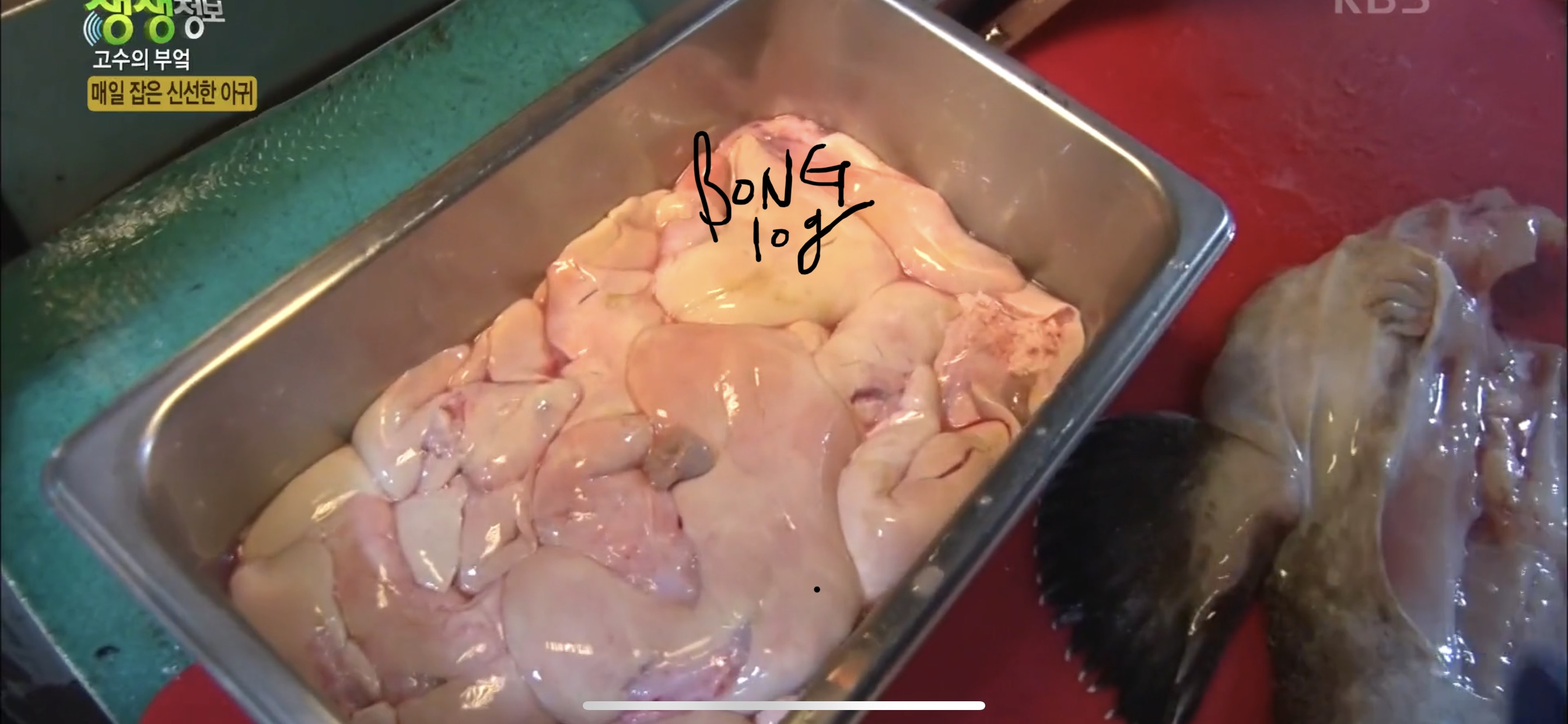 신선한 상태로 손님상에 대접하기 위해 오전과 오후로 나눠 아귀를 손질해준다고 하는데요. 신선한 아귀에서만 맛볼 수 있다는 아귀의 내장은 따로 보관해줍니다. 살아있는 아귀의 손질이 훨씬 손이 많이 가지만 신선함을 위해 살아있는 아귀만을 고집한다고 하네요.